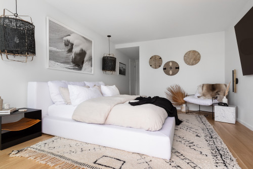 14. Boho-Coastal Gray & Ivory Bedroom, New York