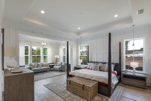 Use natural fibers like rattan, rope, and other woven textures for your project’s materials. This bedroom plan is best done with a more open and flowing design.