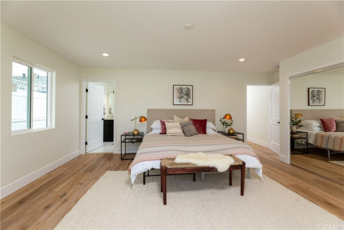 If you’re ready for a fiber touch, go for a more casual look with mismatched nightstands, a reading corner, or even a desk or dresser converted into a nightstand!