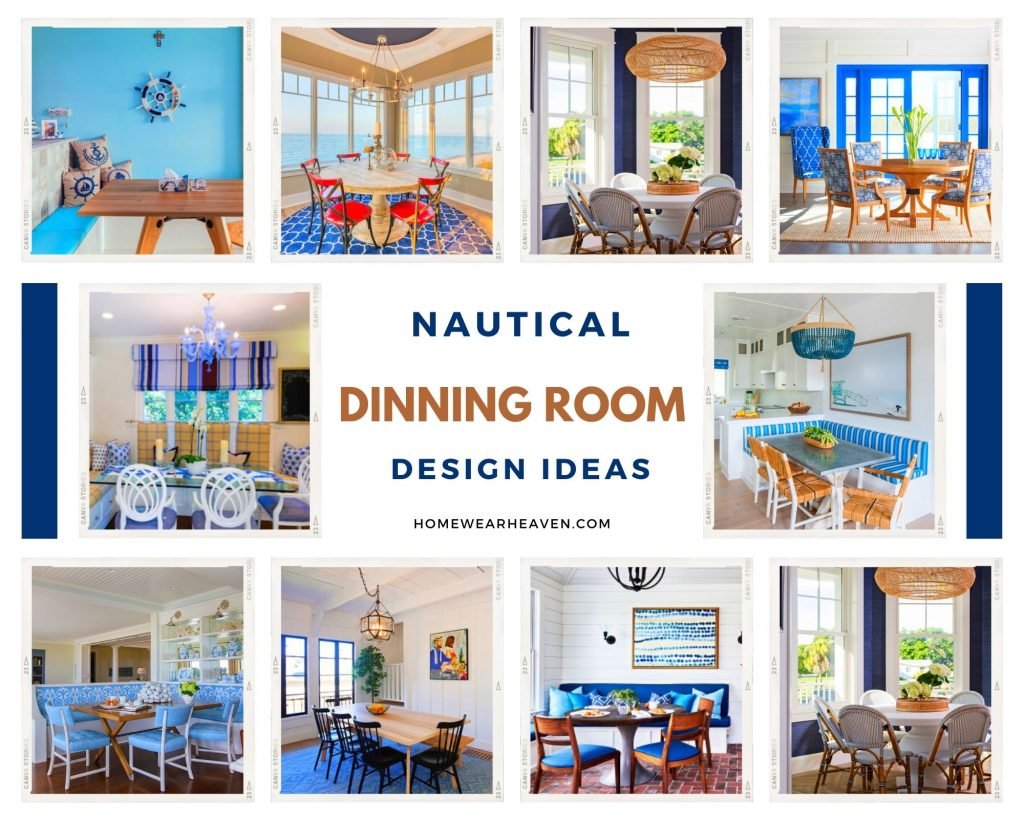 - Use blue and white colors One of the hallmarks of a nautical theme dining room is the use of blue and white colors. These colors reflect the colors of the sea and sky and create a relaxing and inviting atmosphere. Use these colors on walls, furniture, and accents to create a cohesive look.