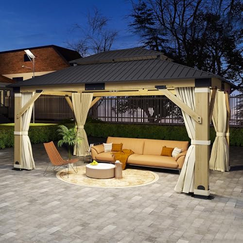 LOPOO Cedar Wood Gazebo – Solid Wood Hardtop with Galvanized Steel Double Roof, Includes Netting & Curtains – Perfect Outdoor Shelter for Patio, Backyard, Deck, and Lawns