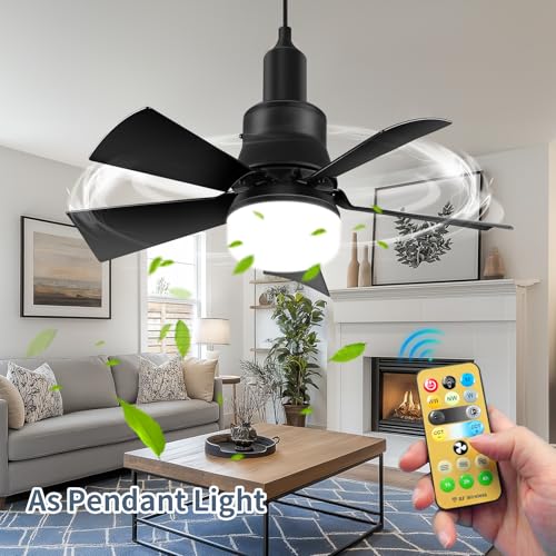 - 【2 in 1 Indoor + Outdoor Ceiling Fan Light】Our fan light can be used indoors & outdoors (avoid direct splash of water), which makes it ideal for tents gazebos and coops. The long reach plug in cord is 19.5ft long, you can easily find a wall outlet to plug it into.