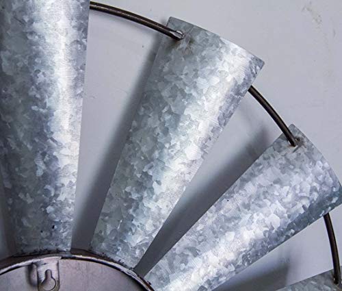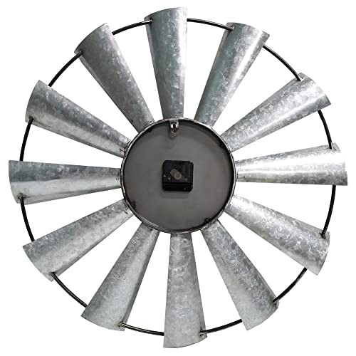 - 🕰️GALVANIZED METAL-With rust accents the clock creatively crafted metal with 12 windmill blades which takes several times acid washing and galvanized to make nice shinny wave, the distressed clock center and iron ring shows its old-fashioned century favor.