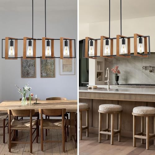 - MODERN & FARMHOUSE: Create a cozy and comfortable home atmosphere with the farmhouse-inspired Briarwood Collection Rustic Linear Chandelier,especially designed to illuminate the heart of your kitchen, dining room or industrial styled places. Openwork wood and metal frame adds rustic vintage flair to your space, it boasts rustic-finished wood construction, designed to cast a soft ambient light over your room.