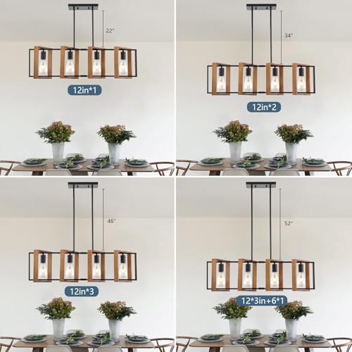 - CUSTOMIZED & ADJUSTABLE HEIGHT : There are total of 8 rods in this Farmhouse Rectangular Chandeliers. The length of 6 of them is 11.8 inches each. The other 2 rods length is 5.9 inches. You can adjust the hanging fixture by the rods to 11.8", 23.6", 35.4", and 41.3"