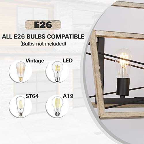 AMZASA Farmhouse Rustic Black Lantern Chandelier Hanging Light Fixture 4-Lights for Kitchen Island Dining Room Hallway Entryway Foyer UL Listed