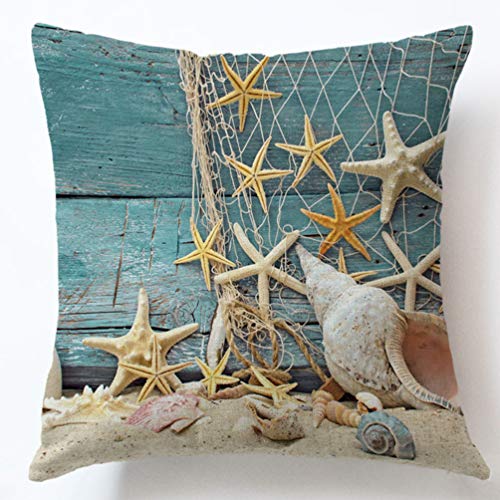 7COLORROOM Nautical Coastal Decor Pillow Covers Starfish/Seashell/Sand/Conch/Beach House Decorative Cushion Covers 18 x 18 Inch Sea Theme Home Decorative Pillowcases, 4 Pack