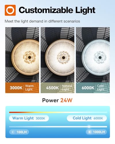 - Customizable Light: Our ceiling fans with lights are dimmable (10%-100%) for allowing you to find the ideal light for every occasion. At the same time, you can also adjust light temperature from 3000K to 6000K.