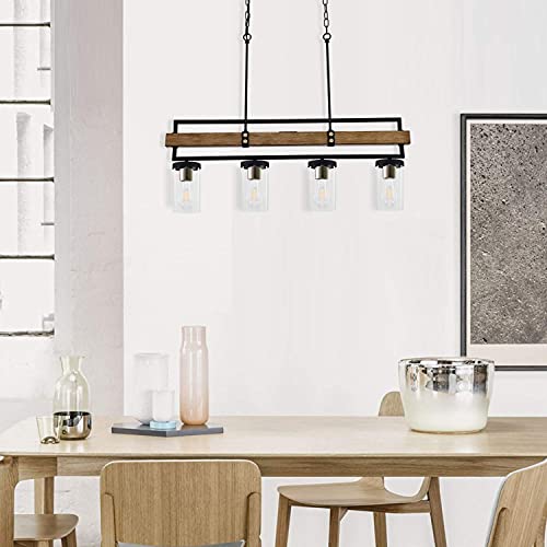 ALAISLYC 4-Light Kitchen Island Lighting Farmhouse Pendant Light Kitchen Island Fixtures 36" L Hanging Linear Chandeliers for Dining Room Black and Wood