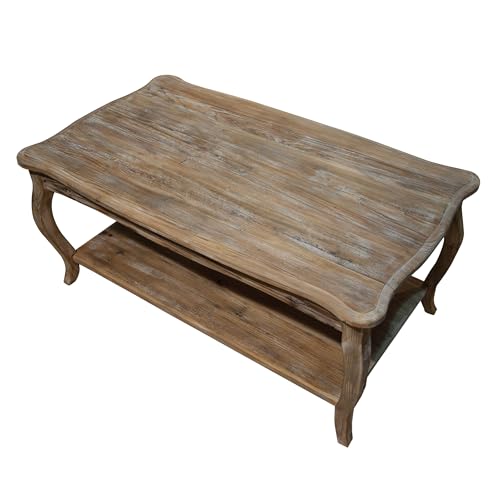 Alaterre Furniture Austerity 42-Inch Rustic Coffee Table with Open Shelf, Curved Legs, and Scalloped Edge – Easy Assembly Reclaimed Wood Living Room Table – Farmhouse Furniture (Driftwood Finish)