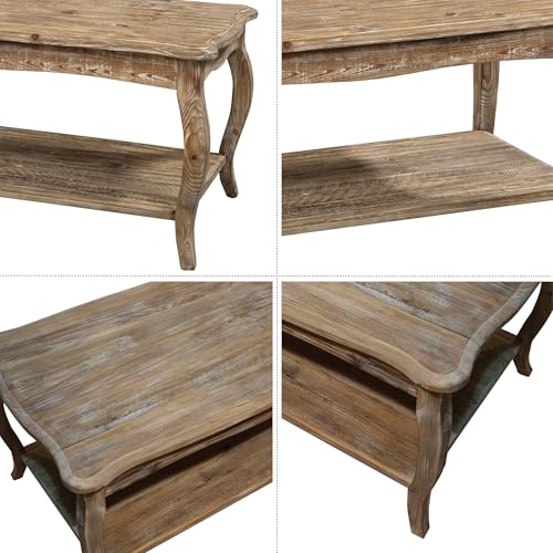 - FARMHOUSE STYLE WITH DECORATIVE DETAILS – Featuring elegant curved legs and scalloped edges, this rectangular coffee table blends classic farmhouse style with a touch of vintage sophistication, ideal for cozy cottage, rustic modern, or transitional décor themes.