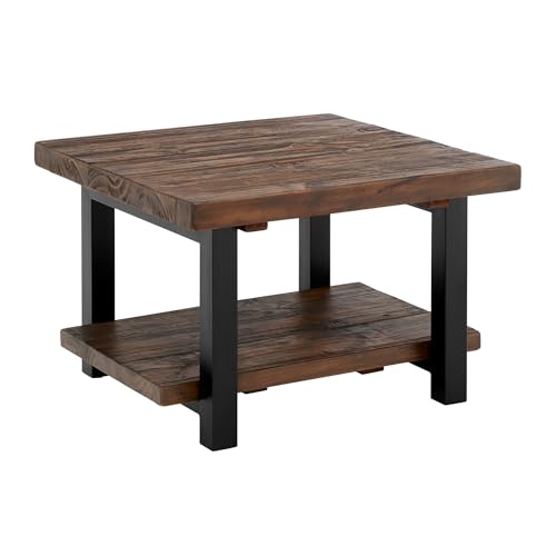 Alaterre Furniture Pomona Living Room Collection – 27 Inch Square Solid Wood Coffee Table with Metal Legs – Modern Farmhouse Rustic Small Space Table (Rustic Brown)