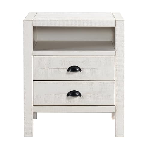 - [CRAFTSMANSHIP AND STYLE] This Arden 2-Drawer Nightstand in Driftwood White features a rustic finish that highlights the natural wood grain; black drawer pulls add elegance, enhancing any bedroom from modern rustic to boho chic