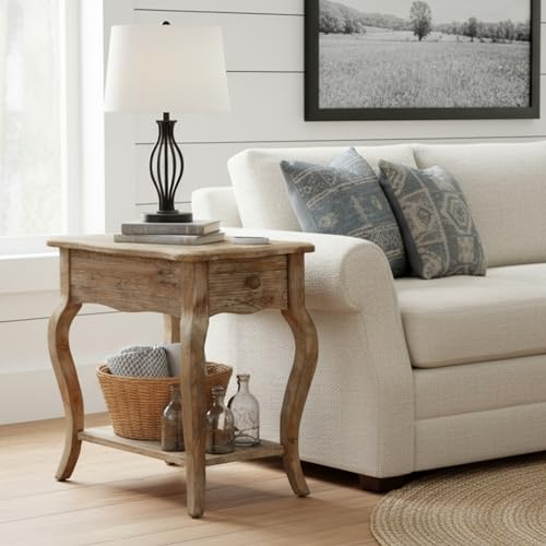 - DESIGN AND FUNCTIONALITY – Features Queen Anne legs and a scalloped edges for a traditional yet stylish appearance. It includes a drawer and a lower shelf to help keep your living space organized and clutter-free.
