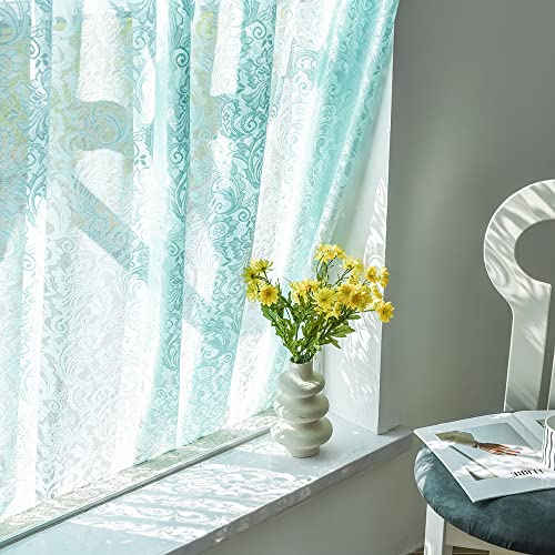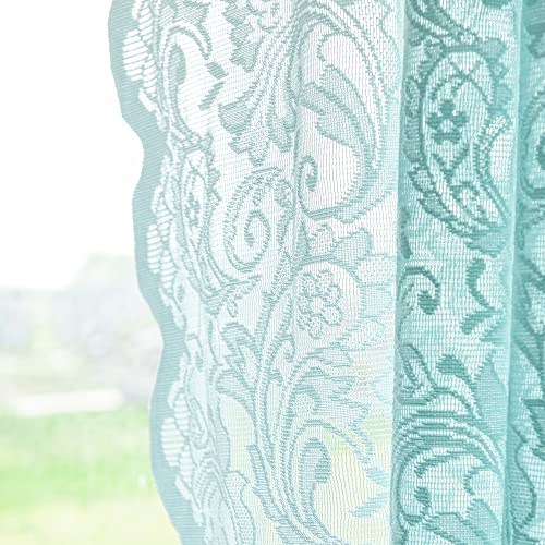 - LIGHT & AIRY – Sheer lace aqua curtains 63 inch length feature fresh ocean green color and vintage floral design. Give room an airy aesthetic, bright and breathable.