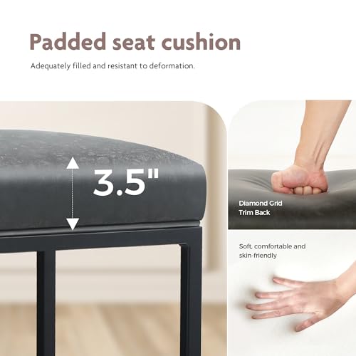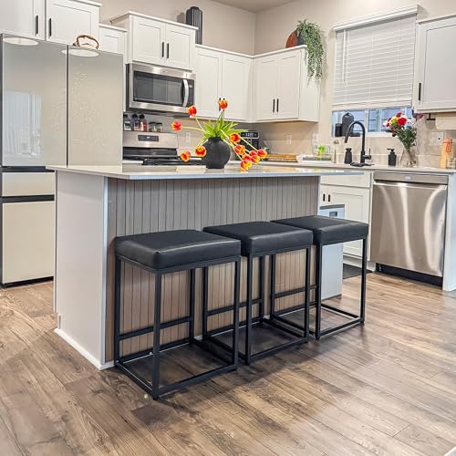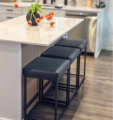 ALPHA HOME 24 Inch Counter Height Bar Stools Set of 2, Upholstered Bar Stools for Kitchen Island, Counter Stools with Faux Leather Cushion and Sturdy Metal Frame, Modern Barstools, Black