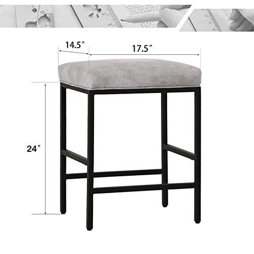 ALPHA HOME 24” Backless Counter Stools Set of 2 Leather with Square Cushion Chairs for Counter Kitchen Dining Cafe Bar Stools with Footrest Sturdy Chromed Black Metal Steel Frame,Light Grey.
