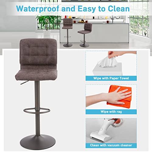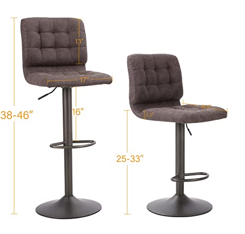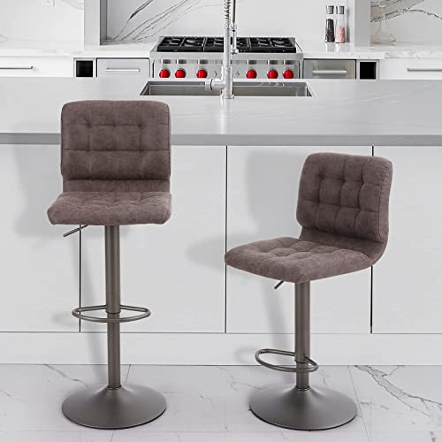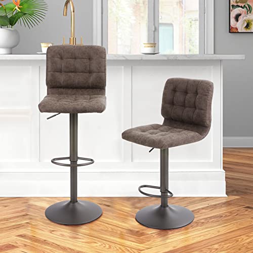 ALPHA HOME Bar Stools Set of 2 with Back, Adjustable Counter Height Bar Stools with PU Leather Seat, Armless Swivel Barstools for Island Kitchen, Brown, 2PCS