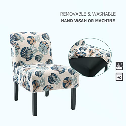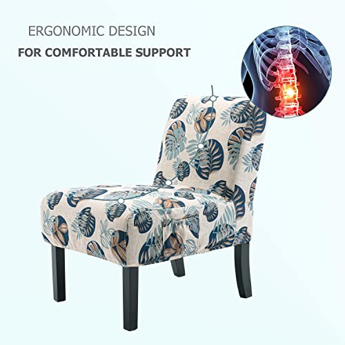 Altrobene Modern Armless Accent Slipper Chairs, Set of 2, Living Room Bedroom Side Chair, Removable Washable Covers, Beige & Floral & Blue