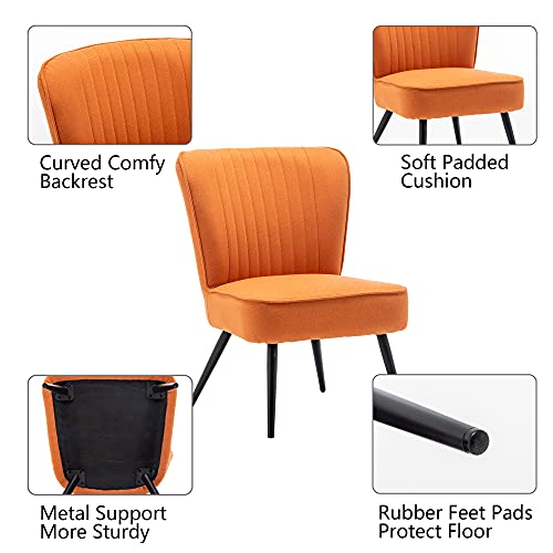 Alunaune Orange Accent Chair Set of 2 Upholstered Living Room Chairs Modern Bedroom Furniture Sets Armless Slipper Club Chair Guest Reception Couch Comfy Wingback Single Sofa