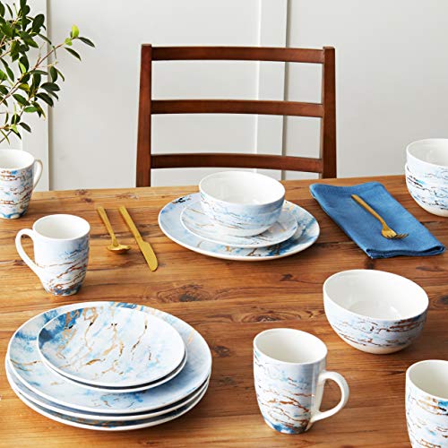 American Atelier 7089-16-RB 16 Piece Marble Dinnerware Set, 10.5" x 10.5", Blue/Gold