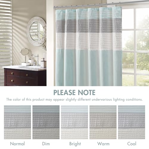 Madison Park Amherst Bathroom Shower Curtain Faux Silk Pieced Striped Modern Microfiber Bath Curtains, 72×72 Inches, Aqua