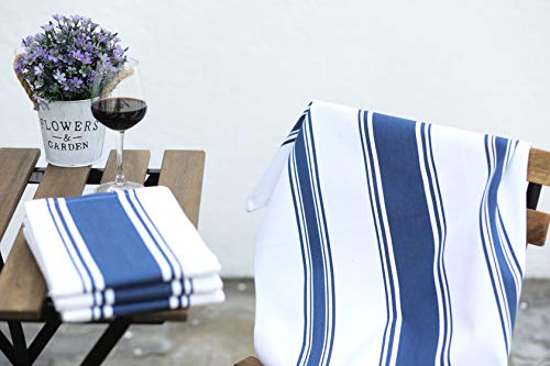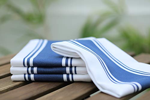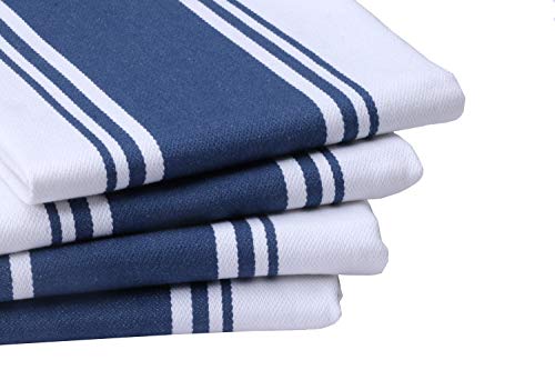 AMOUR INFINI Kitchen Towels 100% Cotton Pack of 4, Highly Absorbent Quick Drying Premium Striped Dish Towel for Kitchen with Hanging Loop Hand & Tea Towels (Blue)