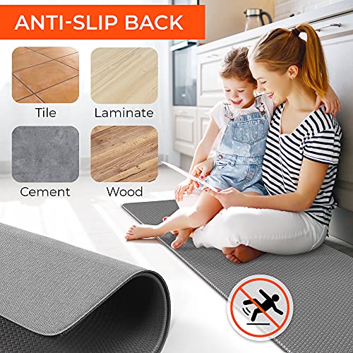 Anti-Fatigue Kitchen Mat Set – 2-Piece Memory Foam Cushioned Mats for Standing – Gray, 18×30 & 18×60, 0.4 in Thick, Waterproof, Non-Slip – Homergy