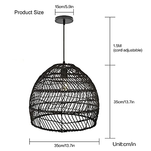 - AoAobs Rattan Woven Pendant Light, Handmade Hanging Light, Basket Design Ceiling Light Creative Chandelier Fixture Black – 35cm*35cm