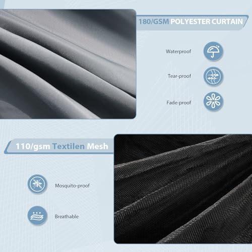 - 【Netting and Curtains】The 180g polyester curtains provide privacy and warmth during colder occasions. The netting not only offers an unobstructed view but also prevents mosquitoes from entering, especially in summer. The insect net design keeps bothersome insects out. You can secure the curtain straps with a windproof hook or tie them directly to the pillars.