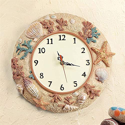 BJL Wall Clock, Clock, Resin, Mediterranean Style, Living Room, Clock, Home Decoration, Mute Clock Modern Wall Clock (Color : A)