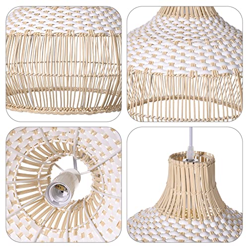 Arturesthome 13.7" White Rattan Pendant Light, Farmhouse Coastal Wicker Hanging Ceiling Light Chandelier, Handmade Woven Lampshade for Kitchen Island