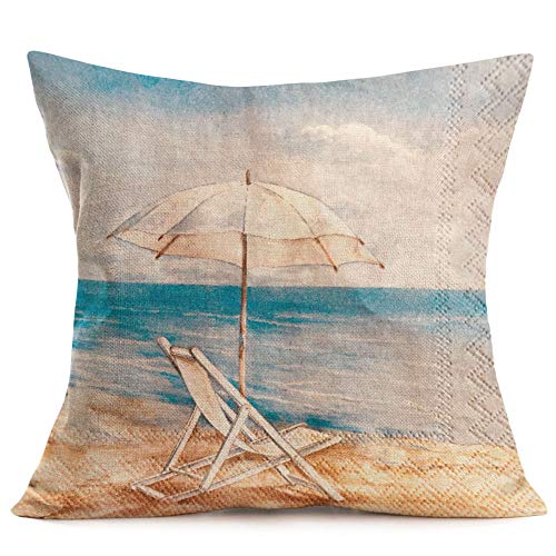 - Asamour Summer Tropical Beach Cotton Linen Throw Pillow Case Nautical Anchor Seashell & Sea Snail Decorative Cushion Cover Square Pillow Sham 18’’x18’’ Set of 4,Beach Chair,Coconut Palm