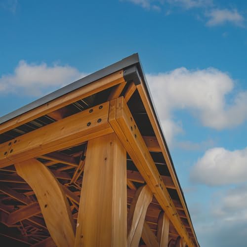 Backyard Discovery Barrington 20' x 12' Cedar Wood Outdoor Gazebo Pavilion with Hardtop Galvanized Steel Hip Roof, Snow Support, Wind Resistance, PowerPort, Shade for Garden, Patio, Deck, Entertaining
