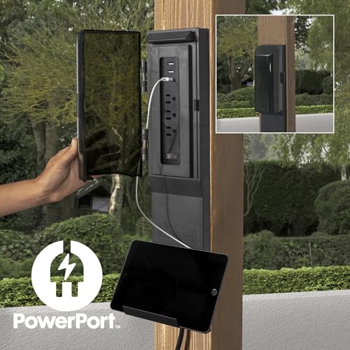 - Powered Up: Patented PowerPort features three electrical outlets and three USB ports to energize your outdoor space, easily mounting to any post on the structure (power source not included).