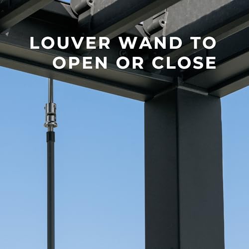 - Adjustable Louvered Roof: Included wand permits louvers to fully open for direct sunlight or close entirely for complete shade and rain protection