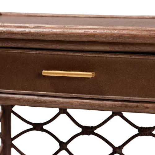 Bali & pari Akane Natural Rattan Nightstand with Drawer and Open Shelves – Coastal Bedside Table with Lattice Design, Brown, 1-Drawer, 24-inch Wide