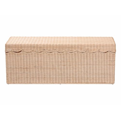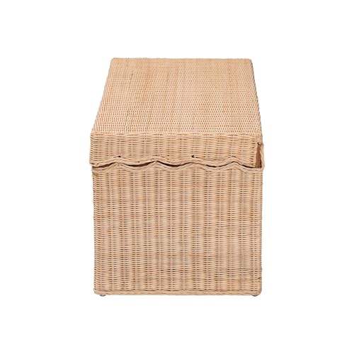 Bali & pari Damita Scallop Natural Rattan Chest with Lift-top Lid – Coastal Boho Style Storage Bench for Bedroom, Entryway, or Living Room Organization