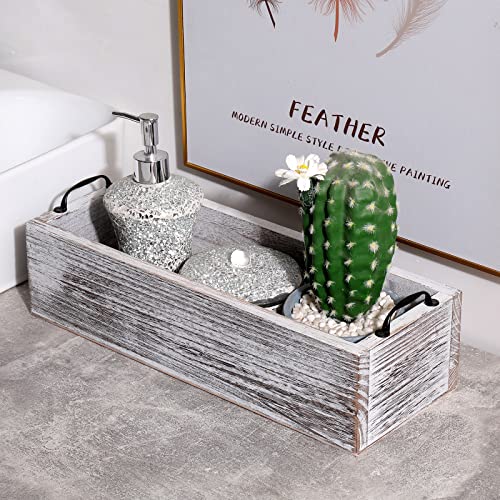 Bathroom Decor Box Toilet Paper Holder Wood Toilet Tank Box Office Table Organizer,Farmhouse Kitchen Utensil Wooden Box with Handles-Rustic White