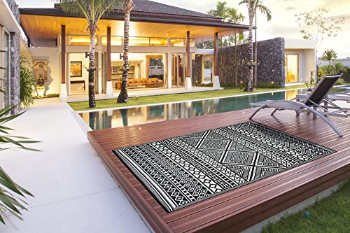 - Beverly Rug Aztec Outdoor Rugs 6×9 Waterproof Boho Reversible Plastic Straw Rug Bohemian Outdoor Carpet Outside Mat for Patio Camping Picnic Porch Deck RV Beach Pool Black and White Texas