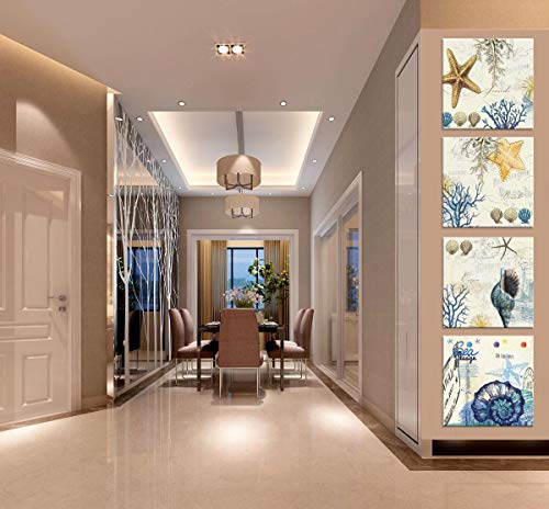 - Blue Seashell Starfish Wall Art Decor Contemporary Seascape Canvas Print Painting for Home Bathroom
