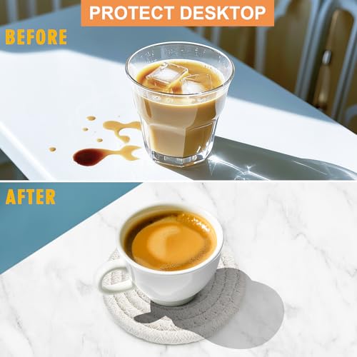 - 【Sustainable & Earth-Conscious】Crafted from chemical-free, organic cotton rope and wild-harvested seagrass, these fully biodegradable coasters protect your surfaces without harming the planet. The dense cotton fibers absorb spills and condensation, while the heat-resistant coasters guards against mug rings and scorch marks—ideal for coffee lovers and craft beer enthusiasts.