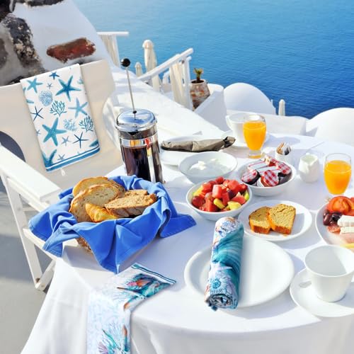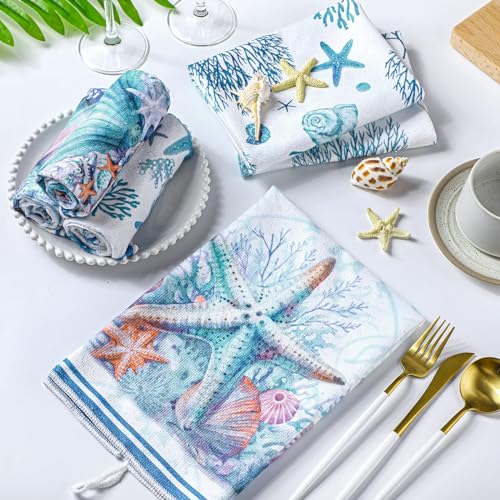 Boyiee Set of 6 Beach Kitchen Towels Coastal Ocean Dish Towels Sea Nautical Tea Towels Absorbent 24 x 16 Inches Shell Coral Starfish Hand Towels Summer Gifts for Farmhouse Kitchen Bathroom Decorations