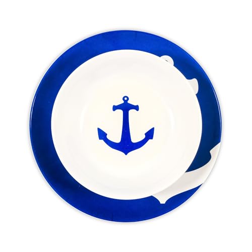 Camco 12 Piece Melamine Dishware Set – Features Blue and White Nautical Design – Includes 4 Bowls, 4 Salad Plates, & $ Dinner Plates – Dishwasher Safe Dish Set (41951)