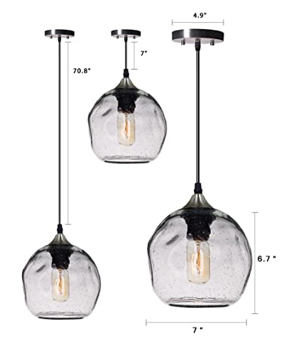 CASAMOTION Pendant Lights Kitchen Island Art Glass Snowflake Lighting Over Dining Room Table Modern Clear seeded Bubbles Ceiling Hanging Fixture Over Sink Brush Nickel 7 Inch Diam
