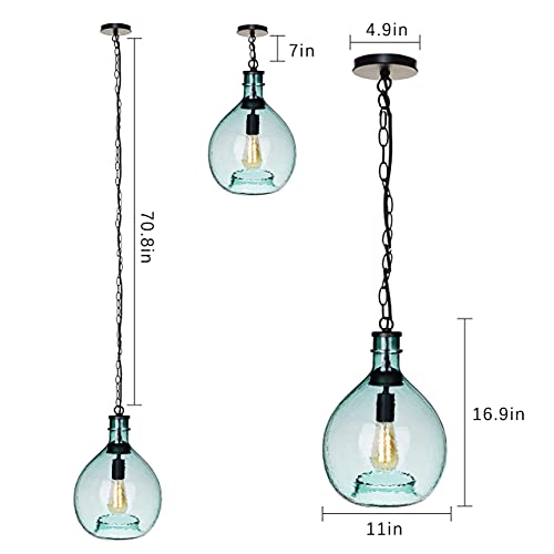 CASAMOTION Pendant Lighting Kitchen Island Hand Bown Glass Ceiling Hanging Light Fixtures Vintage Rustic Modern Farmhouse Globe Over Dining Room Table Hallway Recycled Green Color 11 Inch Diam