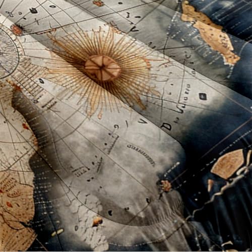- 【Size Information】The navigation compass bedding set you can get 1 queen world map comforter 90"x 90"(228 x 228cm) + 2 pillow cases 20" X 30"(50x75cm) (Note: pillow and sheet are not included).