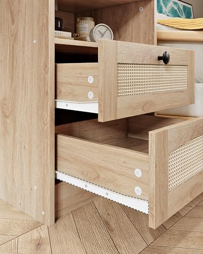 - Spacious Storage Solutions: With a spacious tabletop, open compartment, and 2 deep drawers, this 17.7-inch rattan-like nightstand provides ample storage for books, glasses, and water bottles, keeping your bedside area tidy and organized
