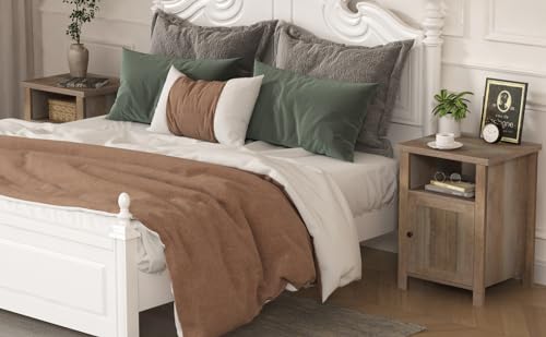 ChooChoo Farmhouse Nightstand, Rustic Vintage End Side Table with Storage for Bedroom, White Oak