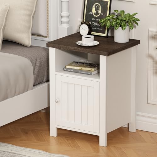 ChooChoo Farmhouse Nightstand, Rustic Vintage End Side Table with Storage for Bedroom, White